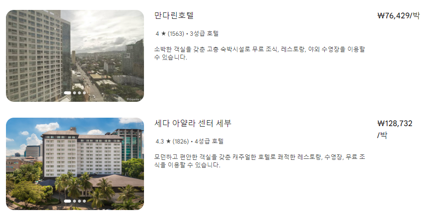 | 필리핀 세부 관광, 여행 일정, 플래너, 추천 호텔, 관광지 (0) | 2024.01.01 |